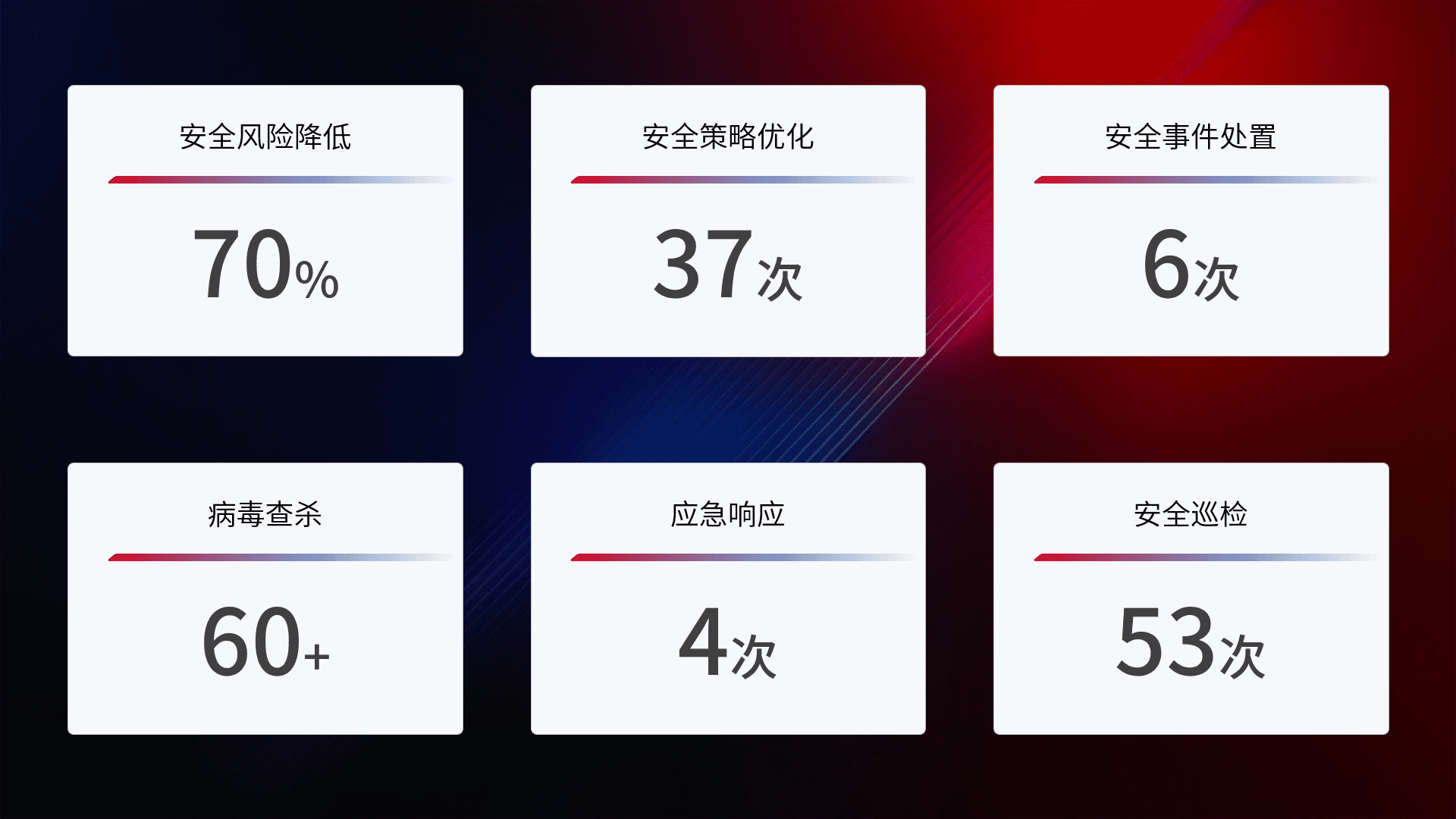 综合报告与文档服务: 定期提供安全事件处置报告、、周/季度总结报告和年度总结报告;详尽的文档服务可帮助客户了解网络安全状况,,,支持决策制定和流程优化。。